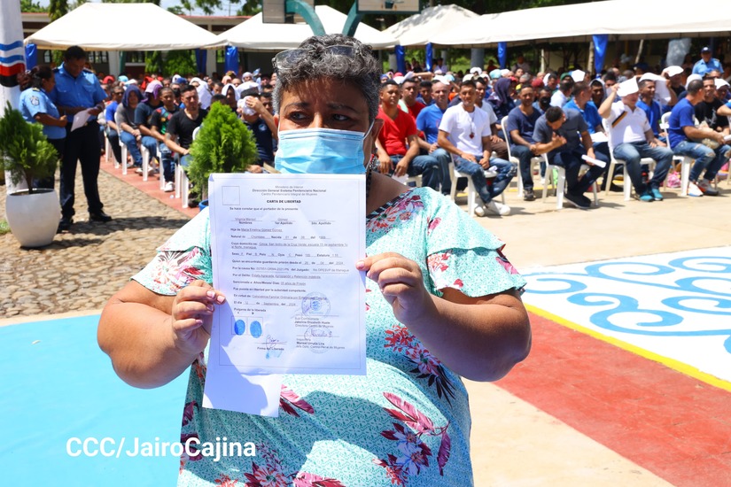 “Gracias a Dios y a nuestro Buen Gobierno que nos da la oportunidad de irnos a reintegrar a la sociedad, a estar con nuestras familias y a nuestros hijos, y dándole gracias también a nuestro Buen Gobierno que nos dio la oportunidad de aprender nuevas cosas. En mi caso, yo me integré en cursos de manualidades en tela y belleza“, refirió.
