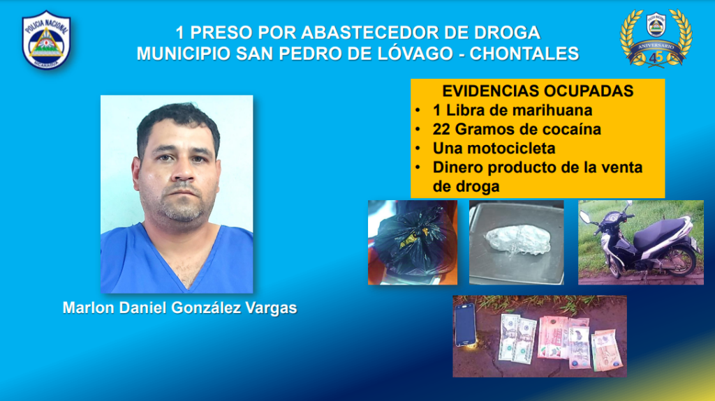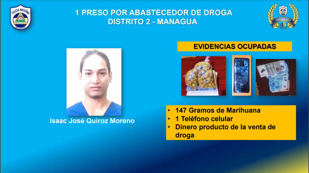 Por abastecimiento de droga se encuentra preso Marlon Daniel González Vargas de San Pedro de Lóvago; Daniel Lira Dávila de Nueva Segovia; e Isaac José Quiroz Moreno del Distrito II de Managua.