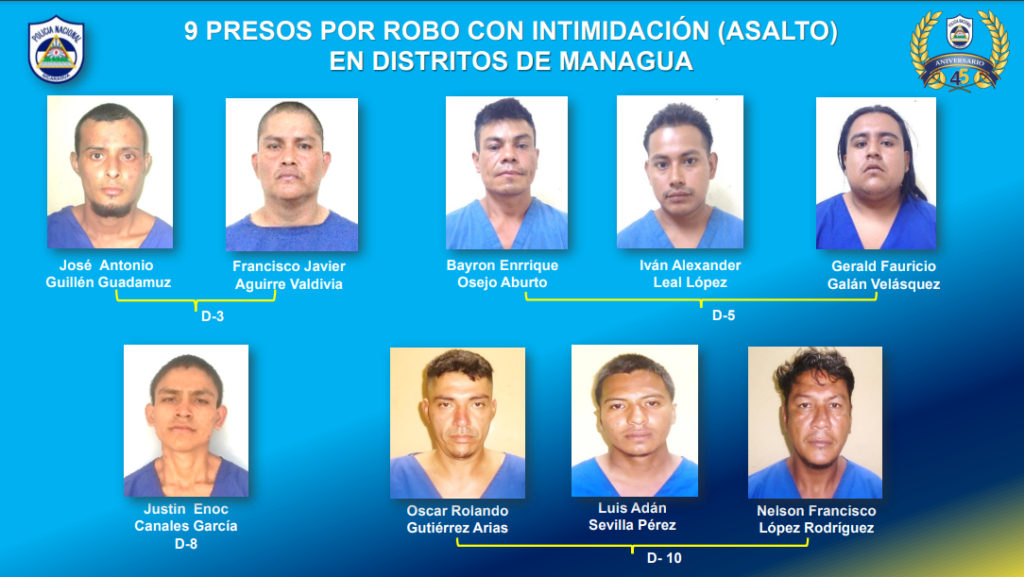 De los asaltantes nueve corresponden a los diferentes distritos de Managua y seis a los municipios de Chinandega, Madriz, Matagalpa y Jinotega.