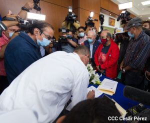 Ministro de Energía y Minas, Compañero Salvador Mansell, y el Director de la Autoridad Nacional del Agua, Compañero Rodolfo Lacayo,
