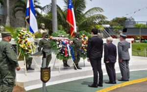 La Fuerza Naval de Nicaragua y la Embajada de Chile en nuestro país, entregaron Ofrenda Floral al Busto del Capitán