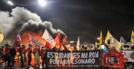 Integrantes de la Unión Nacional de Estudiantes (UNE) de Brasil y de otras organizaciones juveniles realizan una movilización nacional, a