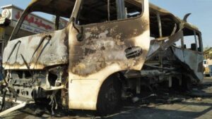 Un autobús de transporte militar explotó en la mañana de este miércoles en la entrada del suburbio Masaken Al-Haras, situado
