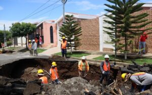Las lluvias caídas sobre la capital la noche de este martes, provocaron dos socavones en Residencial Lomas del Valle. Tras las situación de