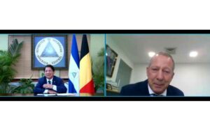 En una ceremonia virtual el Canciller de Nicaragua, Denis Moncada, recibió las Copias de Estilo del Señor Guy Sevrin, que