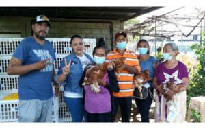 Pequeños productores de los 8 municipios de Carazo, recibieron cada uno 30 gallinas ponedoras para iniciar nuevos emprendimientos avícolas, que