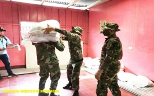 Ejército realiza descargue de paquetes alimenticios en Río San Juan