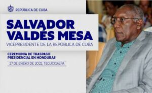 El vicepresidente de Cuba, Salvador Valdés Mesa, agradeció el apoyo a la nación caribeña brindado por organizaciones solidarias de Honduras