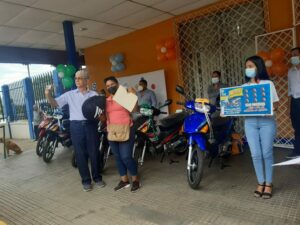 Seis motocicletas fueron entregadas este viernes por las autoridades de la Lotería Nacional a los ganadores de la semana que