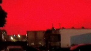 El cielo de la ciudad portuaria de Zhoushan, situada en el este de China, se tiñó de rojo el pasado