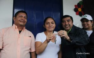 La Alcaldía de Managua entrego las llaves de su vivienda digna a Carolina Sánchez, habitante del barrio Benedicto Valverde ubicado