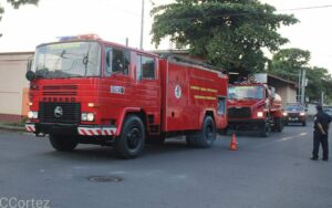Un camión de bomberos con capacidad de 500 galones de agua y una cisterna de 2 mil galones, fueron trasladados