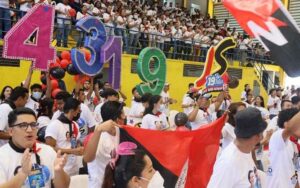 Un mundo mejor!Un mundo de amor!Hay eterna juventud,Hay revolución! Los jóvenes de la Revolución, los jóvenes de la patria bendita
