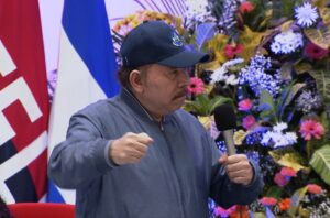 Presidente de Nicaragua, Daniel Ortega, durante su participación en el 42 aniversario de fundación de la Fuerza Naval del Ejército