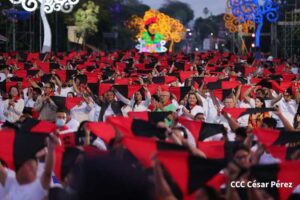 (Tomado del 19 Digital) El presidente de Nicaragua, comandante Daniel Ortega y la vicepresidenta Rosario Murillo presiden acto de conmemoración