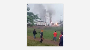 (Tomado de RT) Un gran incendio se desató la noche de este jueves en un rascacielos en construcción de un
