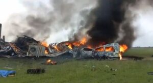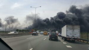 (RT).- Este lunes se reportó un gran incendio en un depósito de neumáticos en las adyacencias del Aeropuerto Internacional de