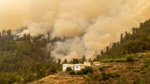 (TeleSur).- El incendio forestal declarado en la madrugada de este sábado en el noroeste de la isla de La Palma,