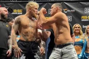 (Marca).- Nate Diaz la ex estrella de UFC le tiró una patada al Influencer y ahora boxeador Jake Paul, luego