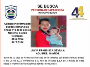 La Policía Nacional del departamento de Boaco pidió a la ciudadanía nicaragüense, suministrar información que permita dar con Lucia Francisca