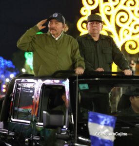 El Presidente de Nicaragua, Comandante Daniel Ortega y la Vicepresidenta Compañera Rosario Murillo participan en el Desfile Militar “Pueblo Ejército” en celebración del 44
