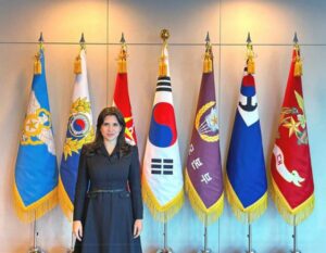 En el Mundo Convention Center, la diplomática nicaragüense Zhenia Ruth Arce Zepeda, entregó ante el presidente Yoon Suk Yeol, las