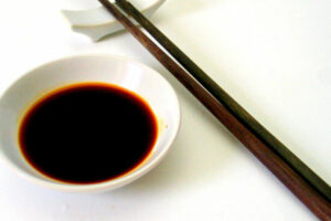 La salsa de soja es una salsa que se consigue mediante la fermentación de granos de soja y trigo tostado partido