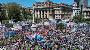 Centrales sindicales y organizaciones sociales de Argentina protestaron este miércoles en la ciudad de Buenos Aires en contra de un