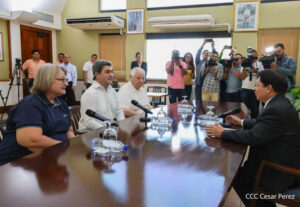 El ministro de Relaciones Exteriores, Denis Moncada Colindres, recibió este viernes al embajador de Osetia del Sur en Nicaragua, Narim