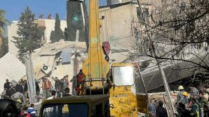 Aviones de combate israelíes bombardearon hoy un edificio residencial en el barrio de Mezzeh en la capital siria, Damasco. La