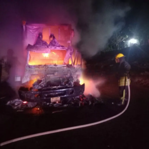 Un camión placa CH 14166 se quemó por completo este lunes en el kilómetro 172 de la carretera León –