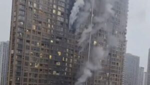 Un incendio registrado este viernes en un edificio residencial en Nanjing, la capital de la provincia de Jiangsu, China, dejó