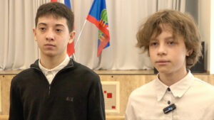 La comisionada presidencial para los Derechos del Niño en Rusia, María Lvova-Belova, condecoró este lunes a dos escolares, Islam Jalílov, de 15 años, y Artiom