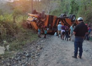 Un bus de transporte colectivo que conducía Delvin Rubén Cruz, terminó volcándose por una falla mecánica, este sábado cuando se