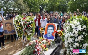 Con ofrendas florales, música y consignas revolucionarias, estudiantes de las universidades del Consejo Nacional de Universidades, rindieron homenaje a la
