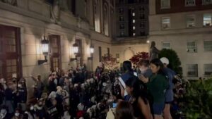 Manifestantes que protestan en la Universidad de Columbia, en Nueva York, contra la guerra israelí en la Franja de Gaza se han