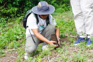 Jóvenes deportistas, entrenadores y colaboradores de la Dirección de Deporte de la Alcaldía de Managua sembraron este martes más de