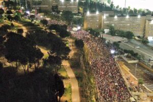 Decenas de miles de personas se congregaron la noche de este lunes frente a la Knéset, el Parlamento de Israel, en