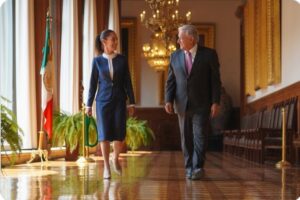 La presidenta electa de México, Claudia Sheinbaum, se reunió este lunes con el mandatario del país, Andrés Manuel López Obrador,