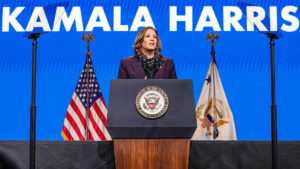 Durante un mitin en la ciudad de Georgia (Atlanta), la candidata demócrata a la presidencia de EE.UU., Kamala Harris, arremetió