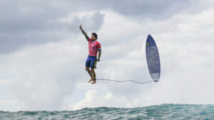 Entre todas las fotos de los JJ.OO. de París, se destacó la memorable imagen del campeón mundial de surf brasileño, Gabriel Medina,