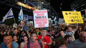 El Foro de Familias de Rehenes y otras organizaciones convocaron este sábado a protestas en Tel Aviv, capital de Israel,