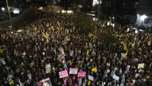 Cientos de manifestantes han salido este sábado a las calles de Tel Aviv, Israel, para corear consignas exigiendo el fin