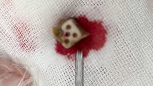Un hombre de 23 años, que sufría estornudos persistentes y congestión nasal, resultó haber tenido un dado incrustado en la