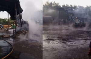 Dos autobuses totalmente quemados, dos con dañados parciales y un carro afectado, dejó un incendio que inició a eso de