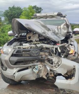 Este domingo, dos motociclistas fallecieron trájicamente al impactar con la moto en que viajaban contra una camioneta Toyota Hilux placa