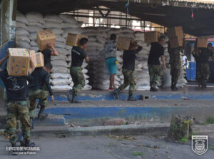 El Ejército de Nicaragua participó en el descargue de 6 mil 314 quintales de alimentos (arroz, frijoles, cereal y maíz) y 23