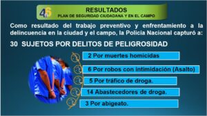 La Policía Nacional capturó durante la última semana a 30 sujetos por cometer diversos delitos de peligrosidad, entre estos, 19
