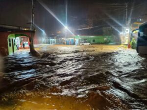 Las fuertes lluvias registradas la noche del viernes en Chontales provocaron el desborde el Río Artiwas, dejando más de 60