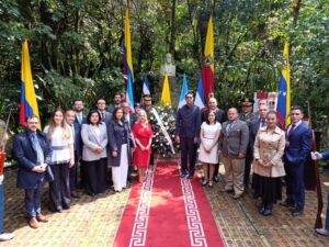 A través de la colocación de ofrendas florales en la Casa Museo Quinta de Bolívar en Bogotá, Colombia, diplomáticos de